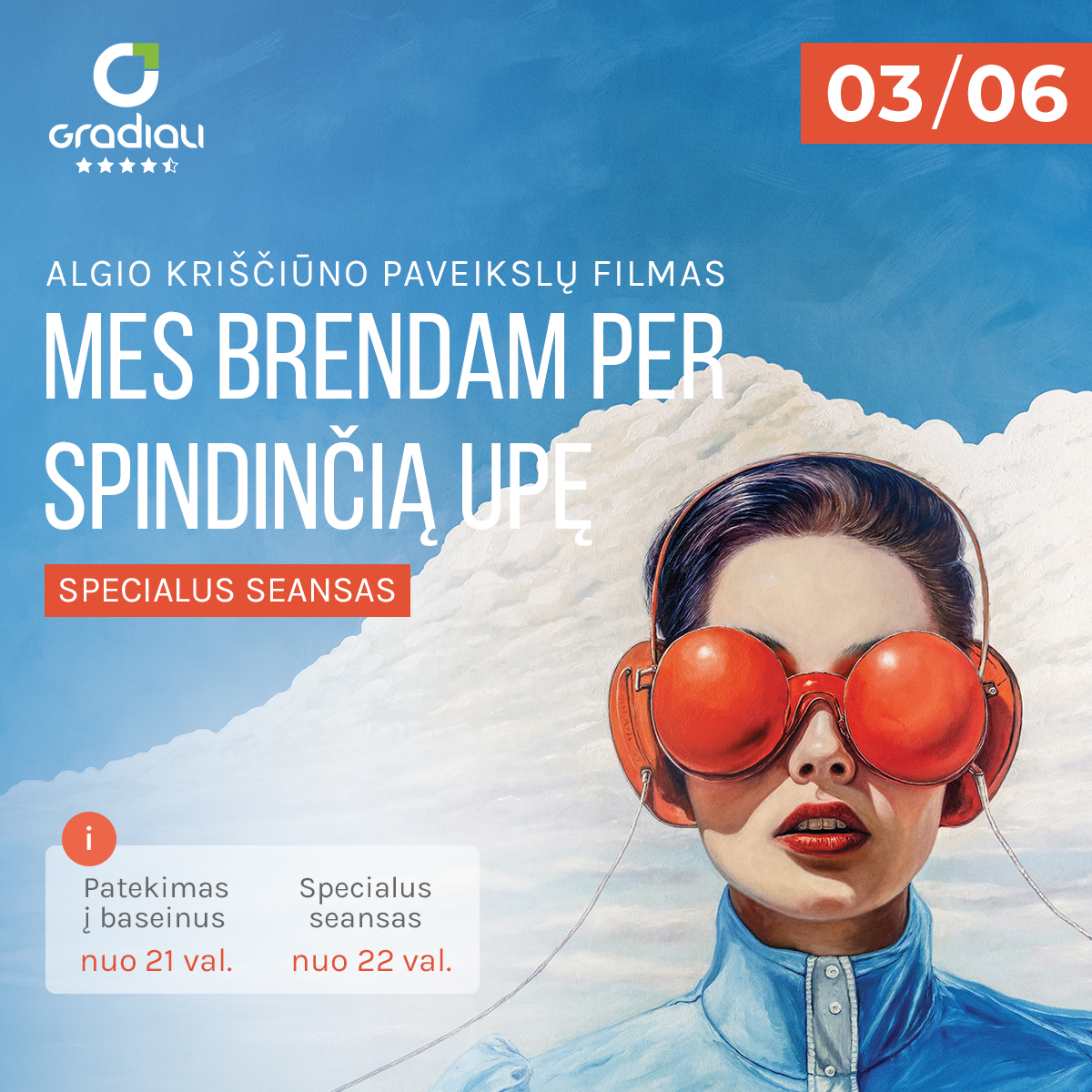 MES BRENDAM PER SPINDINČIĄ UPĘ – Algio Kriščiūno paveikslų filmas didžiojoje „Gradiali“ baseinų ir pirčių erdvėje