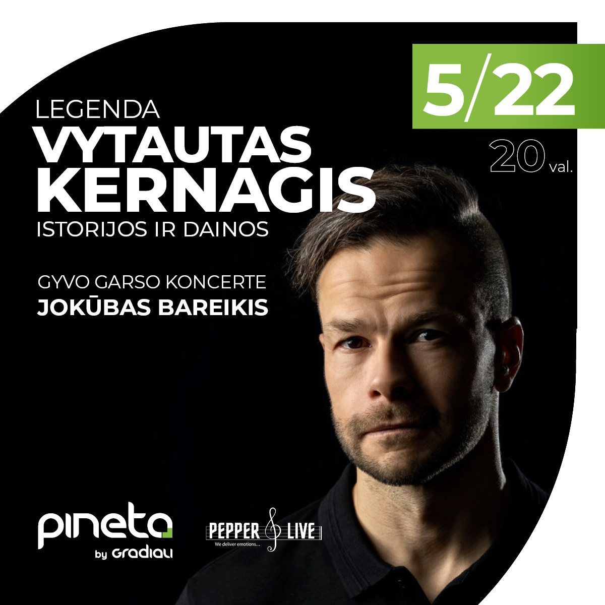 Restorane „Pineta“ atgims legendinės maestro dainos, kurias atliks aktorius ir muzikantas Jokūbas Bareikis. „Tai turi skambėti toliau“, – sako Jokūbas ir kviečia tai pajusti patiems. Vakaro metu atlikėjas pažada atlikti ne tik gražiausias maestro dainas, bet ir papasakoti išskirtinių istorijų iš kūrėjo gyvenimo.