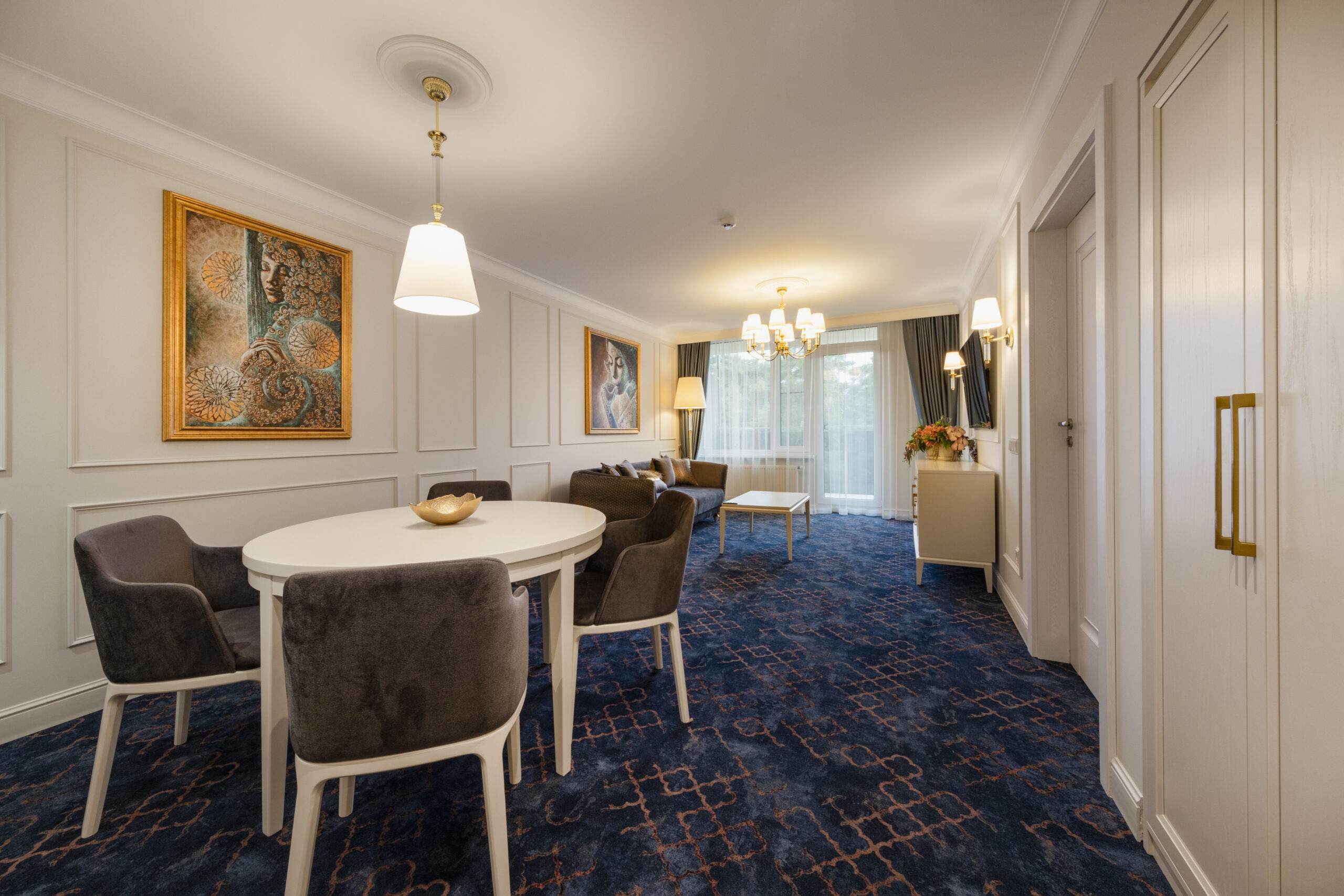 Номер, расположенный на пятом этаже, выделяется элегантностью и роскошью, предлагая особенный комфорт и уют. Окна выходят на умиротворяющий сосновый лес, поэтому Вы будете дышать свежим воздухом и наслаждаться прекрасными видами природы.